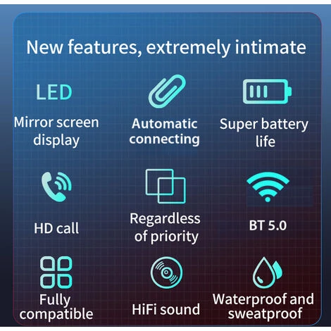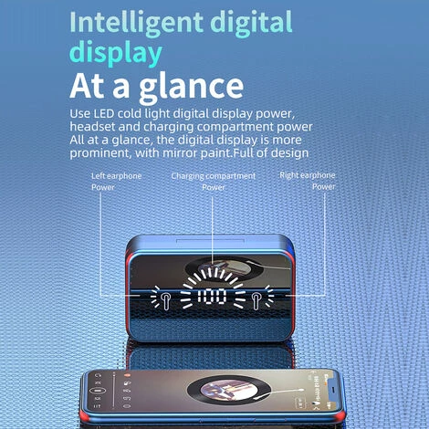 – Couplage automatique, une fois que l’écouteur est couplé pour la première fois, il démarrera automatiquement et se connectera au téléphone lorsqu’il sortira à nouveau du bac de chargement, rapide et pratique.
