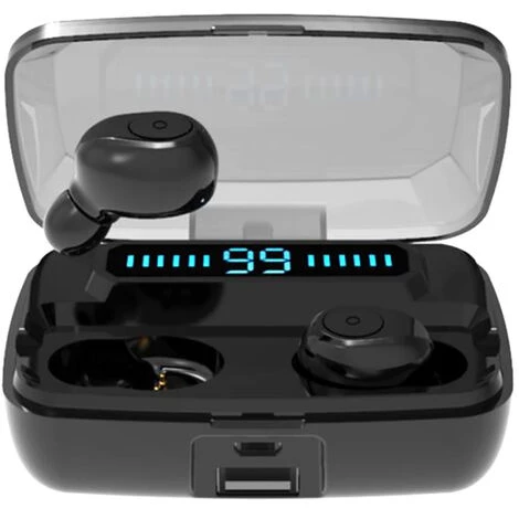 | F9 TWS écouteurs BT5.0 sans fil Casque Sweatproof Sport Mini Oreillettes Noise Cancelling Gaming Headset LED numérique Bouton d’affichage de contrôle Traits: La nouvelle technologie BT V5.0, la transmission du signal stable à faible latence écran d’affichage de puissance numérique à puce LED 2000mAh cas de charge peut charger votre téléphone mobile en tant que banque d’alimentation portable. La technologie de réduction du bruit Conçu pour le sport, l’usure solide son stéréo subwoofer support du microphone haute définition appels clairs binauraux Un bouton opération simple, Confortable à porter Caractéristiques: Modèle: F9 BT Version: BTV5.0 Capacité de la batterie: 50mAh (earbud), 2000mAh (cas de charge) Temps de charge: A propos de 2H Temps de travail: A propos de 3H Autonomie en veille: A propos 120H Taille du paquet: env. 14 * 10 * 4cm Poids du paquet: Approx.130g Liste paquet: 2 * Oreillettes (gauche et droite) 1 * Cas de charge 1 * Câble 1 * Manuel |