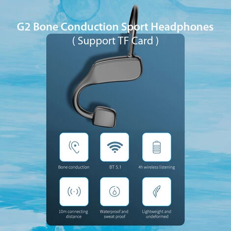 | 1.Description: Nouveaux g2 conduction osseuse TWS casque BT5.1 Casque de sport Prise en charge de la carte TF / Sweat tfrofèdes / batterie 120mAh / avec microphone casque sans fil Compatible avec Andriod iOS 2.Eutures: 3.Pécissement: 4. Note: Liste 5.Backage: |