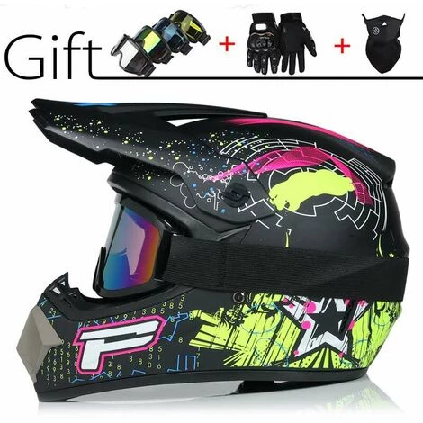 Le produit contient: 1 pièces casque + 3 cadeaux gratuits y compris (1 paire lunettes (Couleur Aléatoire) + 1 pièces masque + 1 paire de gants)