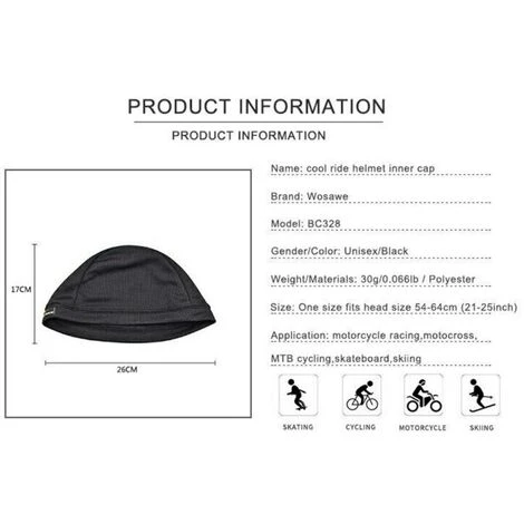 4. Fonctionne à merveille comme doublure de casque si vous faites du vtt, de la course sur route, de la moto, du ski, du snowboard et travaillez à l’extérieur, le matériau empêche la sueur de couler dans vos yeux par temps chaud.