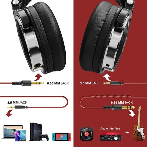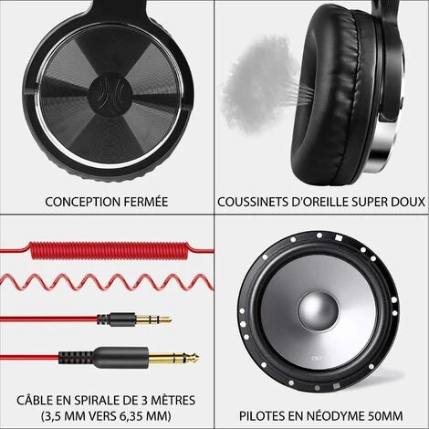 [SON TRÈS BON] Grâce à ce casque audio, vous pouvez entendre le son détaillé, clair et honnête, toutes les musiques sont restituées magnifiquement des graves aux aigus. Ainsi, quel que soit le type de musique que vous aimez, vous aurez l’impression de vous trouver dans une salle acoustique ou de musique en live. Si vous êtes amateur de musique ou professionnel , n’hésitez pas! [CONFORTABLE] Ce casque audio est fabriqué dans un matériau léger et solide, les coussins d’oreilles rembourrés enveloppent bien et n’appuient pas sur les oreilles, le bandeau réglable permet aux adultes et aux enfants de trouver le bon angle confortable pour le porter, même si vous le portez longtemps, vous ne vous sentirez pas fatigué. [PAS BESOIN D’ADAPTATEUR]: Un câble de 2M peut facilement être relié à votre téléviseur ou chaîne stéréo vers votre fauteuil préféré. une prise jack de taille standard de 6,3 mm et une prise jack de 3,5 mm sont intégrées dans ce casque. Les câbles sont tous entièrement détachables, vous pouvez donc laisser le cable sur votre lecteur sans avoir besoin de le débranchet et rebrancher constamment.