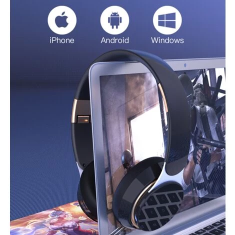 GroupM Casque Bluetooth Supra-auriculaire, Casque Tout Compris De Jeu D’ordinateur Télescopique Pliable De Sport (blanc)