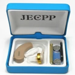 Il comprend 3 bouchons d’oreille de différentes tailles, 2 piles boutons, une cuillère à cérumen, une brosse de nettoyage et un étui de rangement.