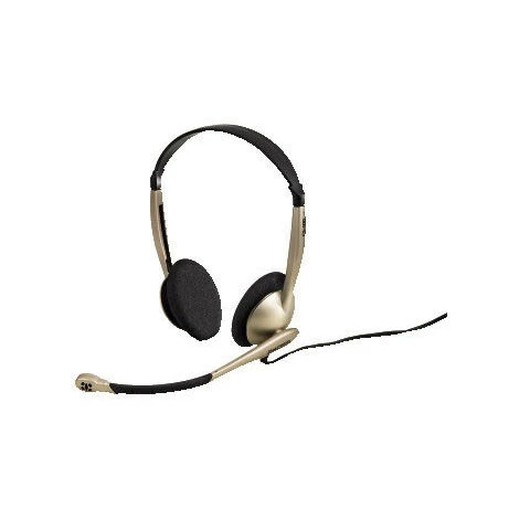 – Super-light design for maximum comfort ,- Ideal for PC speech programs, speech recognition and interactive gaming ,- Noise cancelling microphone for excellent voice transmission ,- Foam earpads for open, hear-through sound ,- Dynamic elements for impressive bass performance ,- Plug: 2x 3.5 mm jack, stereo ,- Cable length: 2.4 m ,- Colour: black/champagne , ,Technical data (headphone): ,- Frequency range: 30 – 20,000 Hz ,- Impedance: 32 ohms ,- Sensitivity: 91dB SPL/1 mW , ,Technical data (microphone): ,- Frequency range: 100 – 16,000 Hz ,- Impedance: 32 ohms ,- Sensitivity: -56 dB +/-3 dB