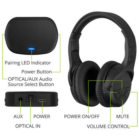 - * Idéalement compatible, notre casque offre la flexibilité et la compatibilité avec tout appareil doté d’un port de sortie audio optique, AUX/3,5 mm ou RCA, que vous tourniez des albums sur un tourne-disque, jouiez à des jeux sur votre PC ou regardiez votre émission préférée sur le dernier modèle de la télévision.