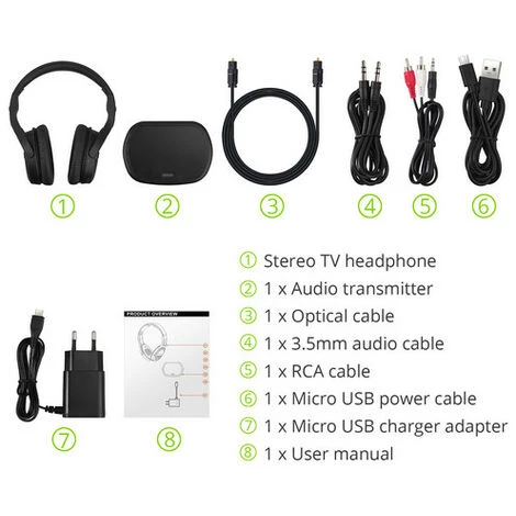 - * Brancher et utiliser, vous n’avez pas à vous soucier de les coupler avec votre appareil. Allumez simplement les deux appareils et ils se connecteront automatiquement. Notre casque est également livré avec un émetteur pour une expérience audio conviviale.
