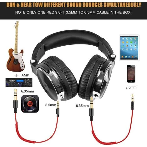 - ?Musique et téléphone pour vous? Les écouteurs DJ sont livrés avec deux câbles détachables. Un câble enroulé de 3 m avec une fiche de 6,3 mm pour les instruments de musique professionnels et les systèmes domestiques. Un câble de 1,2 m avec une prise jack 3,5 mm et une télécommande à 1 bouton intégrée et un microphone en ligne pour la téléphonie.