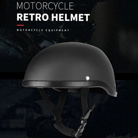 LITZEE Demi-casque De Moto De Style Rétro ABS + Capuchon En Plastique De Coton – Noir Muet Pour Motard Motard Ridder (taille Unique) Universel Lavable – Noir Muet Casques