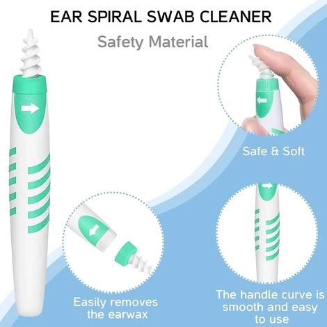 【15 têtes de remplacement】Ce spirale cire d’oreille nettoyeur est livré avec 15 têtes de remplacement souples et flexibles, suffisants pour les familles, non seulement pour votre bébé, mais également pour les autres membres de votre famille, des installations sanitaires, confortables et sûres.