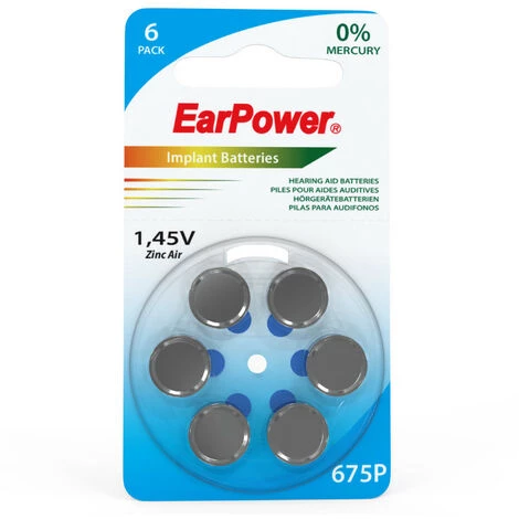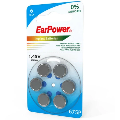 Les piles Pour Implant cochléaire Earpower 675 vous garantissent une utilisation longue durée et très bon rapport qualité-prix. ZeniPower est le fabricant des piles auditives EarPower, reconnu mondialement depuis maintenant 18 ans. Le code couleur des piles pour Implant 675 est le Bleu. Elles sont compatibles avec tous les implants.
