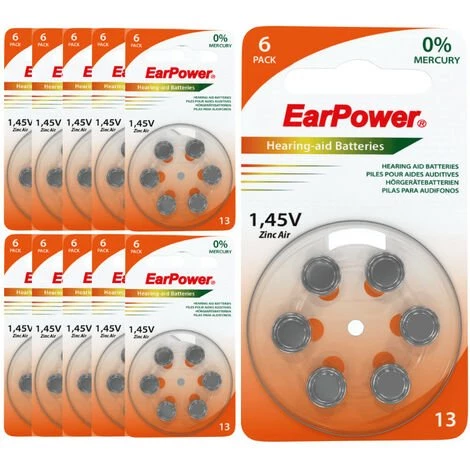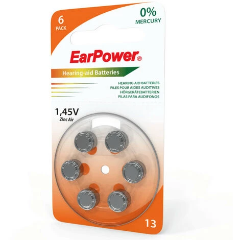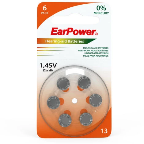 Plaquette 6 piles auditives EarPower type 13 (couleur orange)