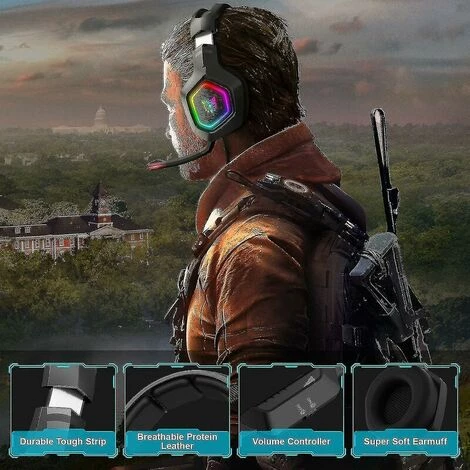 Caractéristiques du produit?: 1. Son parfait?: Les haut-parleurs haute précision de 50 mm du K10 vous offrent un son clair et net, donnant vie aux tirs et aux explosions alors qu’ils passent près de vous dans le jeu. 2.Con?u pour le confort : De conception ergonomique, avec des coussinets super doux sur les oreilles, les K10 font partie des écouteurs les plus confortables que nous ayons jamais con?us, garantissant votre confort absolu après de longues sessions de jeu. 3. Microphone durable et à réduction de bruit?: L’impressionnant micro intégré est super flexible, vous n’avez donc jamais à vous soucier de la pop lorsque vous discutez avec vos amis. Et avec la télécommande multifonction en ligne, vous pouvez garder les yeux sur le prix et accéder à vos paramètres de son ou de micro pour des fonctionnalités supplémentaires. 4. Compatibilité supérieure?: Compatible avec presque tous les appareils avec un port casque/microphone 3,5 mm, il fonctionnera avec votre superbe plate-forme de jeu, ordinateurs portables, PS4, le nouveau X-Box One, votre téléphone portable, Mac OS, iOS, et plus encore. Spécifications?:Modèle?: Taille du haut-parleur K10?: 50mmSensibilité?: 105+/-3dbMicro?: 6.0*2.7mmImpédance?:32+/-15?%Longueur du cable?: 2.1M+/-15%Directionnalité?: Impédance du microphone omi-directionnel?: Gamme de fréquence 2.2k?: Tension de fonctionnement LED 20 Hz-20 KHz?: DC5V+/-5?% de coupure de travail?: Moins Plus 100 mA Sensibilité du microphone?: -42+/-3dBCourant de fonctionnement?: Prise casque?: Longueur du cable USB + 3,5 mm 4 broches?: Environ. 2,2?m / 7,2?ftTaille de l’emballage?: 18.5*10.5*21cm /7.2*4.1*8.2inPoids du colis?: 550g / 1.21Lb Contenu de l’emballage1 x casques de jeu K101 x cable répartiteur1 x manuel d’utilisation