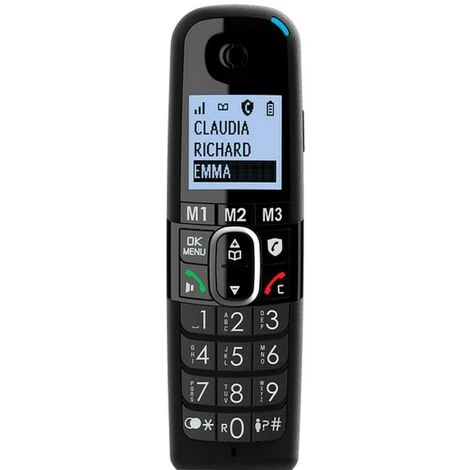 Ce téléphone senior est doté de 3 touches mémoires directes pour appeler automatiquement les numéros préenregistrés d’un simple appui sur un des boutons M1 M2 et M3