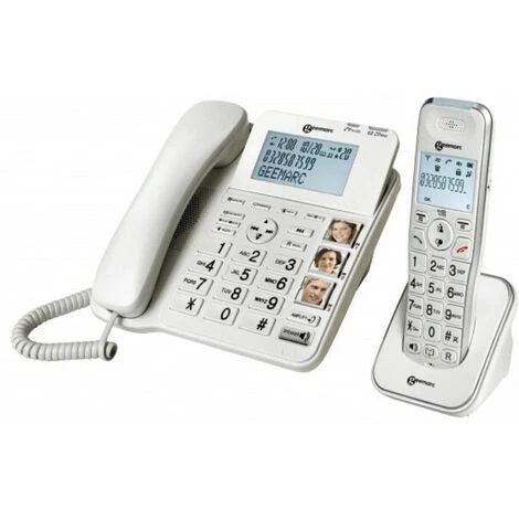 Le téléphone Geemarc Amplidect Combi 295 est un téléphone filaire fourni avec un combiné sans fil et sa base. C’est un téléphone filaire doté de larges touches légèrement bondées et de 3 touches mémoires photos pour appeler ses proches d’une seule pression. Ce set téléphonique est adapté aux seniors, malvoyants et malentendants grâce à de nombreuses options. Il est équipé sur ses deux combinés d’un écran grande taille lumineux qui facilite la lecture des caractères affichés