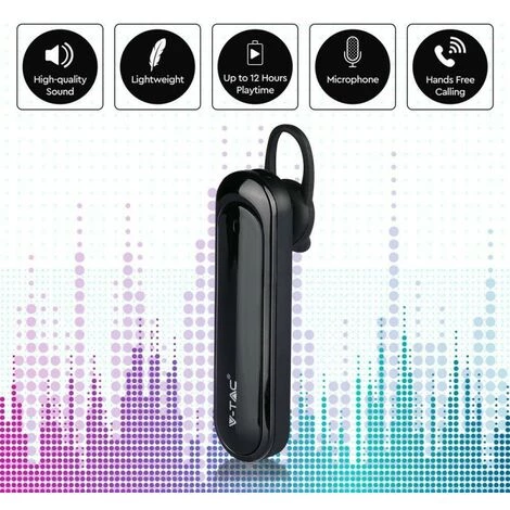 V-TAC Casque Bluetooth 170mAh Couleur Noire